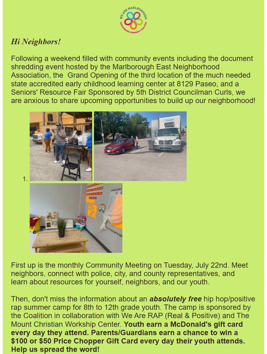 This month: July 22nd Community Mtg: Updates from KCPD Metro Patrol | Making a PIAC request | KCMO Speakeasy Engagement | Jackson County Budget Update